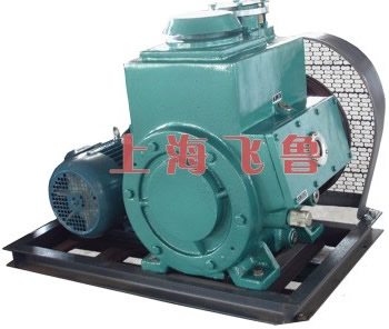 2X系列的各種真空泵的外形和結(jié)構(gòu)是基本相同的,泵由電機(jī)經(jīng)三角皮帶傳動(dòng)到轉(zhuǎn)子。電動(dòng)機(jī)和泵用螺釘卡板固定在底盤上。 2X型旋片式真空泵由泵體、高轉(zhuǎn)子、低轉(zhuǎn)子、前端板、后端板、高轉(zhuǎn)片、低轉(zhuǎn)片、排氣閥、排氣罩、視鏡等零部件組成。見圖2、圖3。在2X型旋片式真空泵體內(nèi)壓入一個(gè)中隔板、將真空泵殼分成高低真空室,各室都有排氣門,高真空室排氣與低真空氣相通。高轉(zhuǎn)子前端伸出前軸;后端伸出后軸。前軸通過前端板的軸承支持、經(jīng)過油密封室而伸出前端板外:后軸由中隔板上的軸承支持。而伸入低真空室內(nèi),低真空室轉(zhuǎn)子則裝在后軸上、故高低轉(zhuǎn)子均由前軸帶動(dòng)。高低轉(zhuǎn)子都有對開的槽子,呈“T”形的旋片由彈簧支撐開而裝于槽內(nèi)。2X型旋片式真空泵的進(jìn)氣口處有過濾網(wǎng),而排氣口處有擋油網(wǎng),視鏡左邊有摻氣閥,下邊有放油塞。